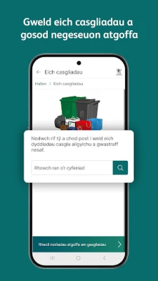 - Gwiriwch ddyddiadau casgliadau ailgylchu a gwastraff