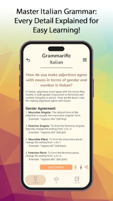 Embark on a captivating journey into the richness of the Italian language with "Grammarific Italian," an all-encompassing app created to guide you through the art of Italian grammar. Whether you are a beginner, an advanced learner, or simply a lover of languages, this app presents a robust platform tailored to your linguistic needs.