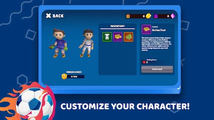 In the game, you have a variety of 6 impressive jerseys to choose from. Customize your player by selecting the jersey that suits your style. Additionally, there are 6 options of cleats to enhance your performance and 6 options of gloves to excel as a goalkeeper.